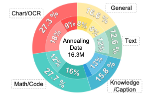 - 阶段 3:联合多模态预训练此阶段实现了对整个架构的全参数最优化。将训练方案扩展至包含 1450 亿个跨越多种模态和任务的 token,涵盖 OCR 解析、视觉定位、数学推理以及结构化数据(表格/图表)。