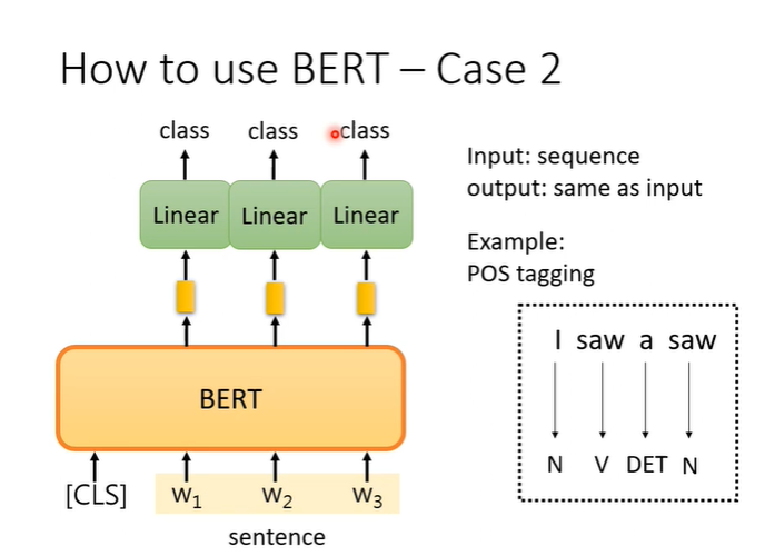 那么BERT需要训练的是,这个盖住部分对应的BERT输出的向量,要与原本被盖住前的字越接近越好。训练时BERT和Linear一起训练,这个训练方法叫做masking。