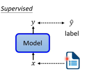 首先supervised是什么?就是一个model,输入一个x输出一个y,要让输出的y是我们所期待的,就要有label的资料,用label的资料去训练。