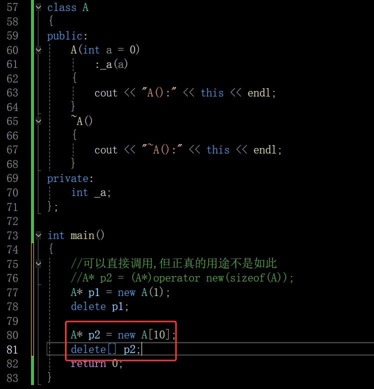 - [3.2 new和delete操作自定义类型](#3.2 new和delete操作自定义类型)