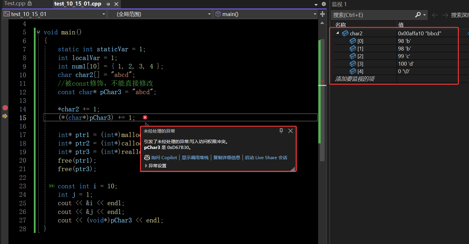补充,常量区的数据还有一个特点,就是不能被修改,其在物理上被保护,只要触发了去访问该区域的数据,系统就能直接用类似assert断言的方式来检查