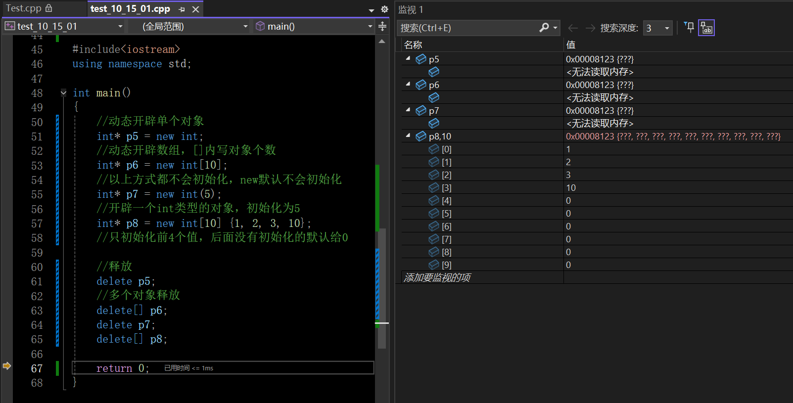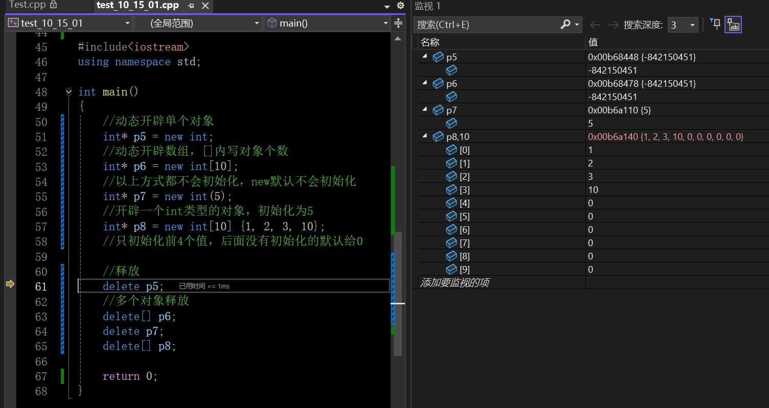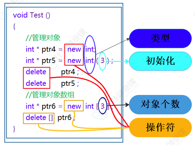 - [3.1 new/delete操作内置类型](#3.1 new/delete操作内置类型)