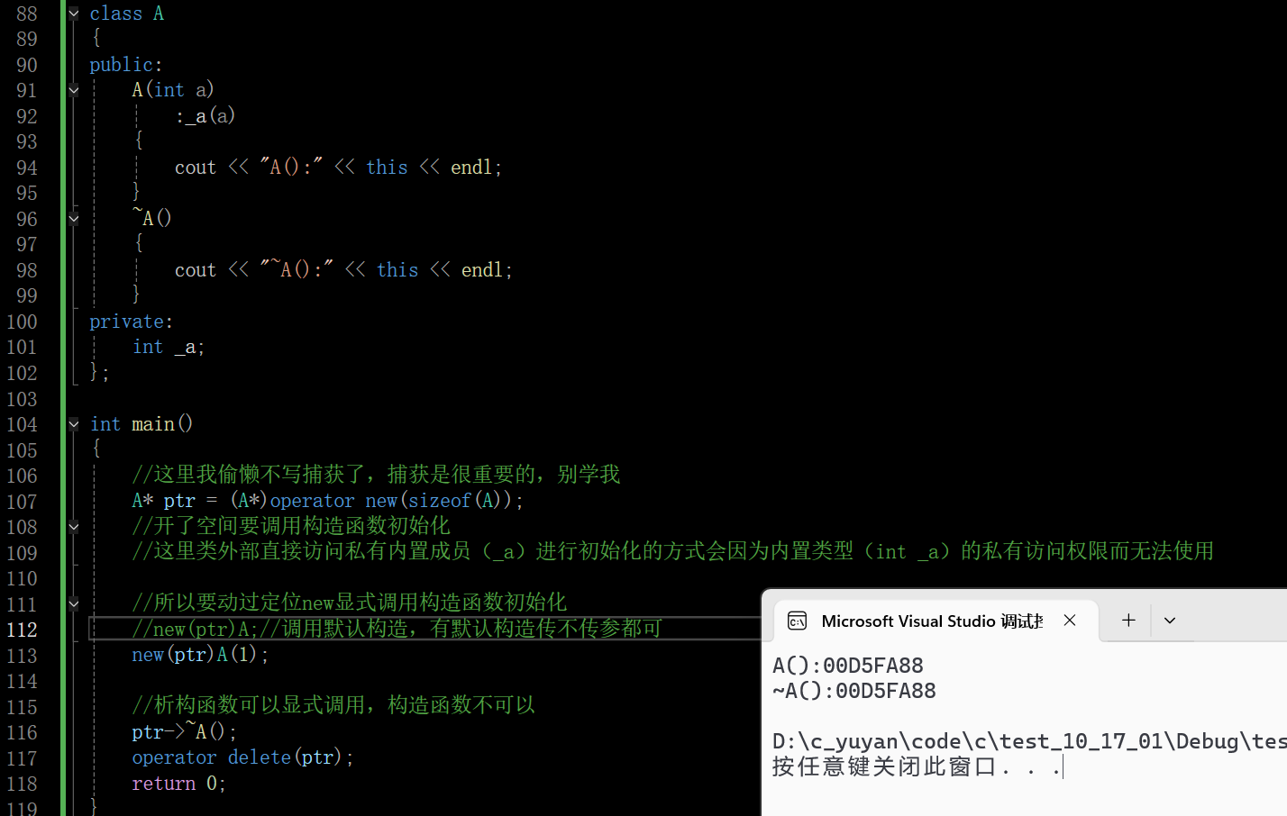 用这两种方式就完美模拟了new和delete的特性
