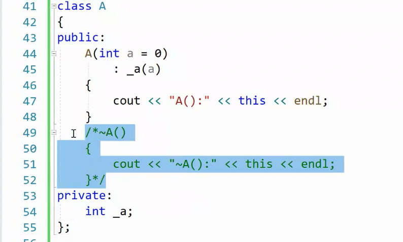 如果把析构函数注释掉,这里又会有一个变化