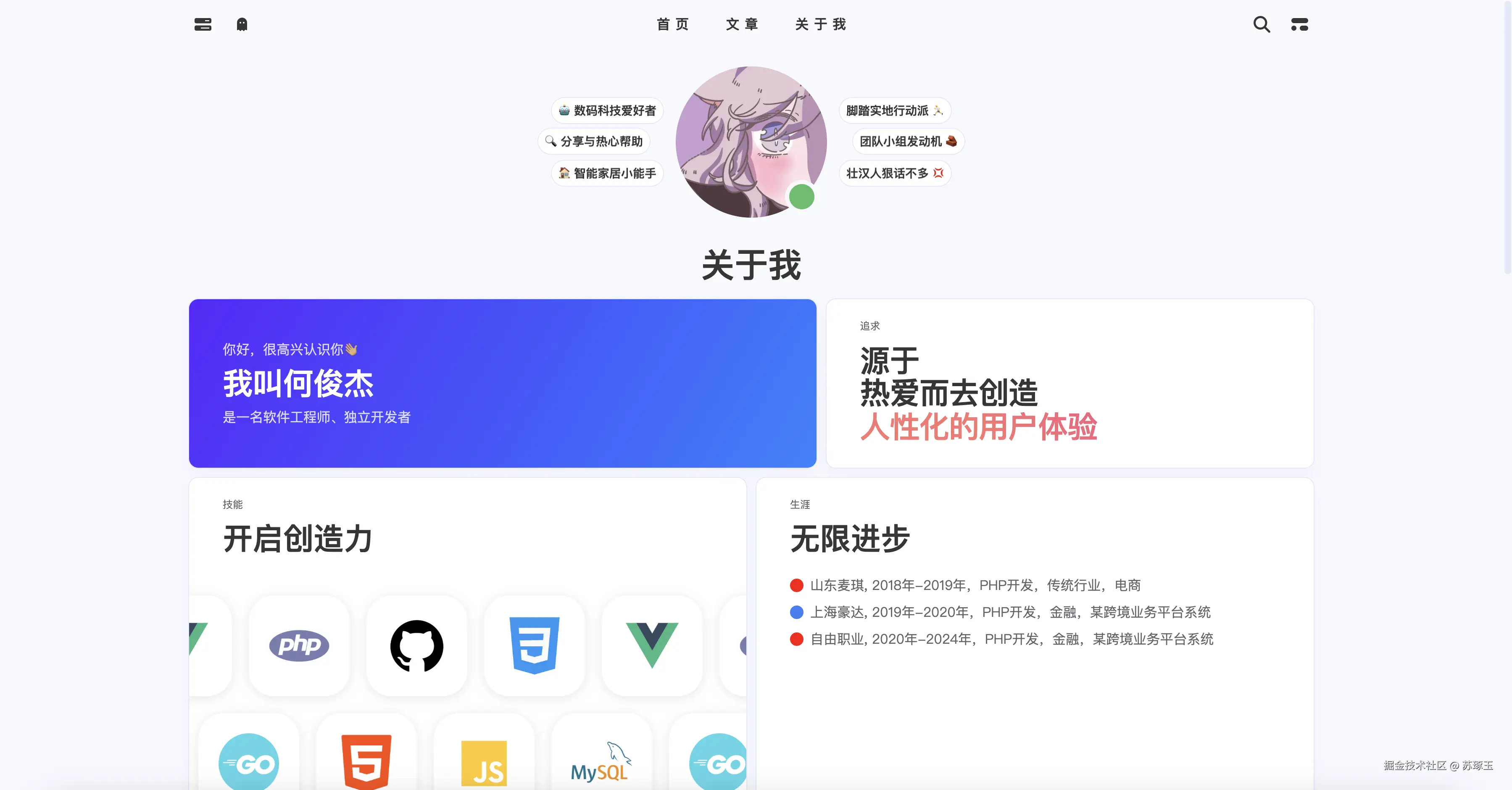 - 页面可以随意增加一些互动组件或者项目展示