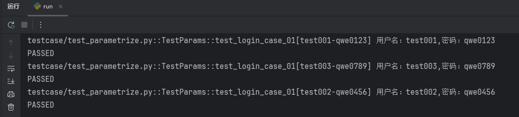 可以看到 test_params_01 这一个测试用例成功执行了三次;