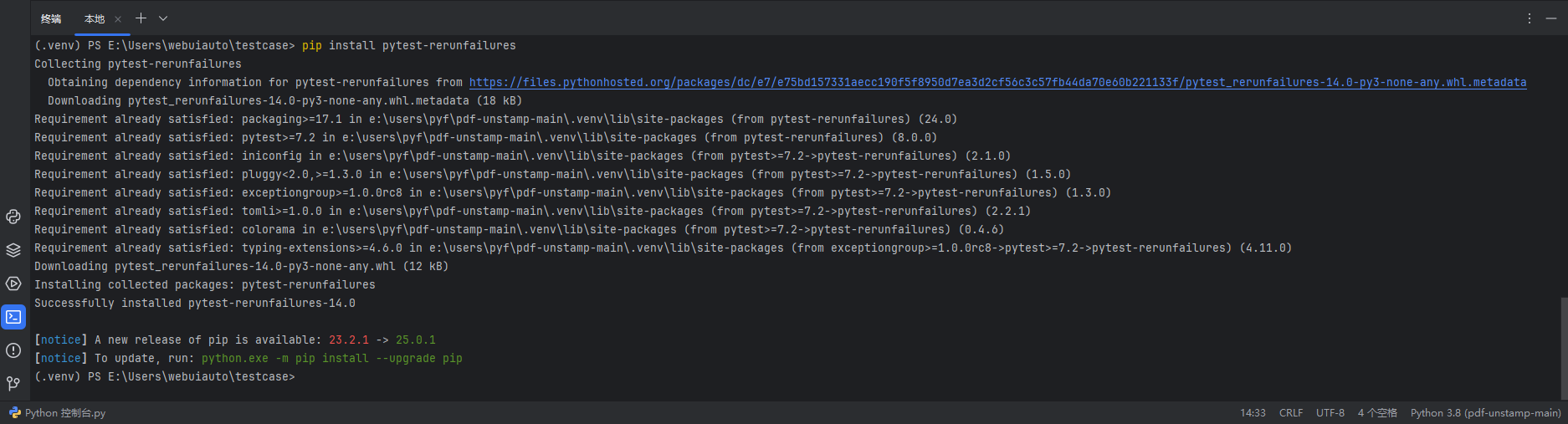 测试用例失败重跑插件;在执行测试用例时,由于网络波动、硬件设备等不确定的因素,导致执行测试用例失败,但并不是测试结果测试失败的情况下,可以用到重试运行失败用例重跑的插件;