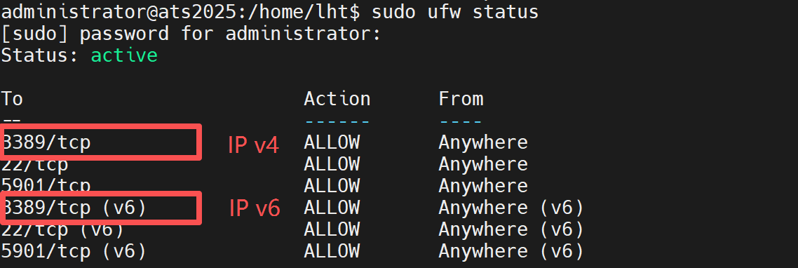 sudo ufw allow 3389/tcp