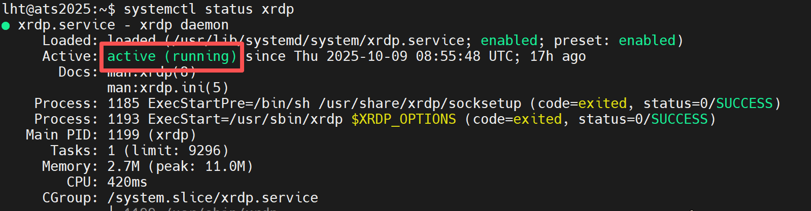 systemctl status xrdp