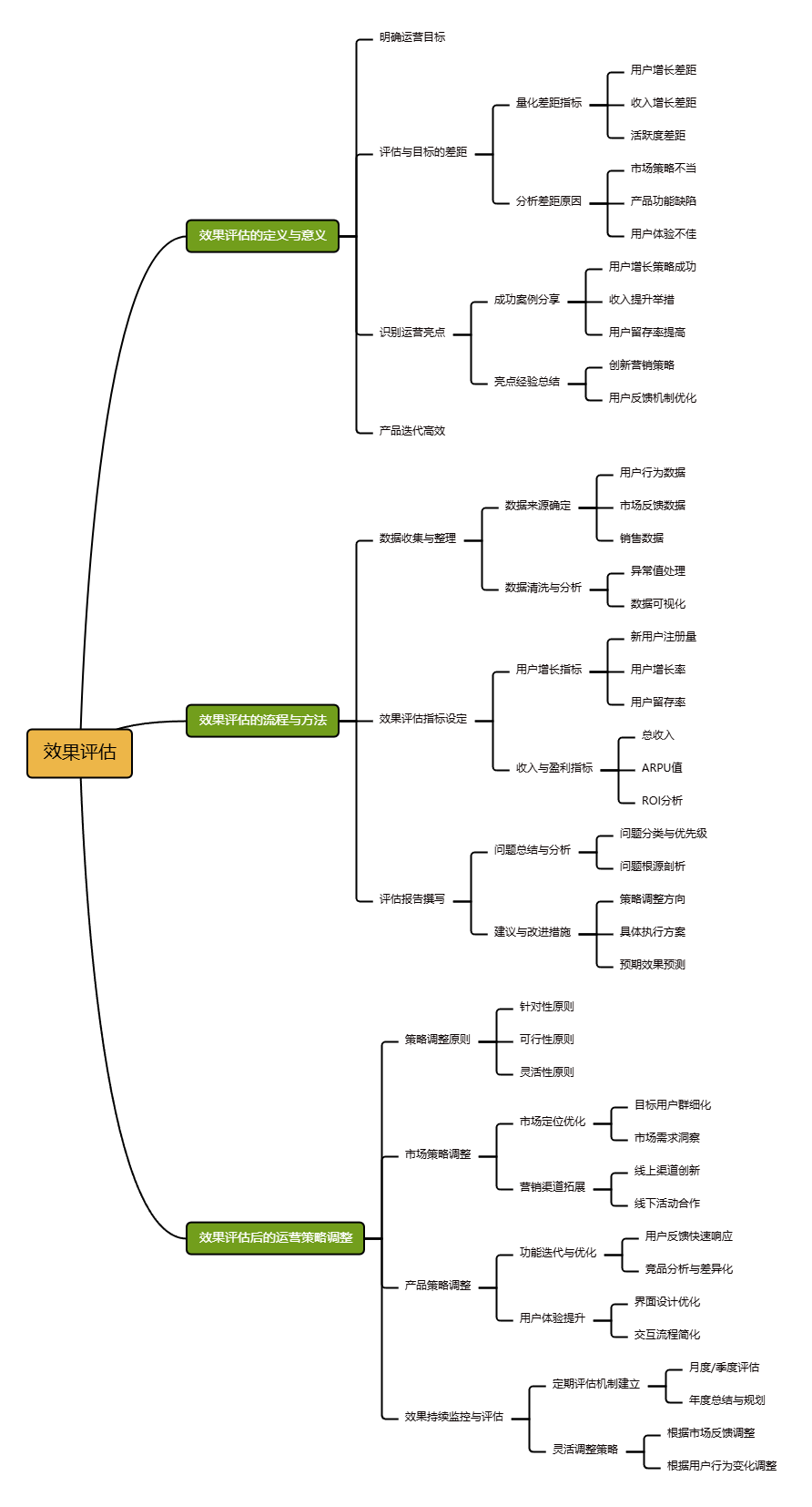 效果评估是产品运营的重要环节之一。要思考与目标的差距、产生差距的原因、亮点以及哪些经验可以复用。通过对效果的评估,可以及时发现问题和不足,调整运营策略和推广方案,提高产品的运营效果和市场竞争力。