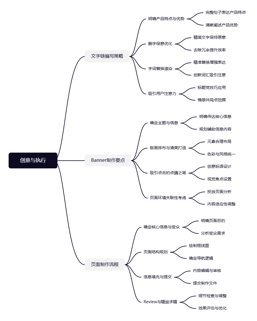 在产品运营中,创意与执行是相辅相成的。在文字链编写方面,要用完整的句子表达清楚产品的特点和优势,然后删字保证达意,再用更好的字词进行替换进行渲染,以吸引用户的注意力。在 banner 制作时,要确定主题和要传达的信息,包括主题之外的辅助信息,进行合理排布,打造清爽的版面。同时,还要有吸引点击的点睛之笔,以提高 banner 的点击率。此外,还要考虑 banner 投放的页面环境,确保内容有关联性。