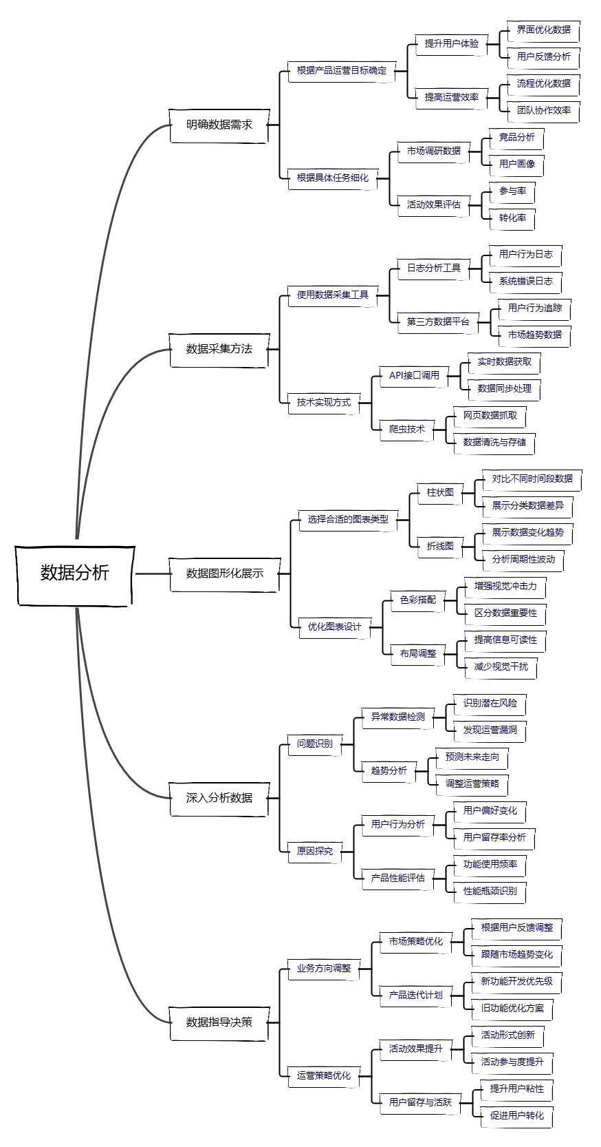 数据分析在产品运营中占据着重要地位。首先,要明确需要什么数据,这需要根据产品运营的目标和任务来确定。然后,要思考如何获得这些数据,可以通过各种数据采集工具和技术来实现。将数据做成图形化展示,有助于更直观地理解数据的含义和趋势。