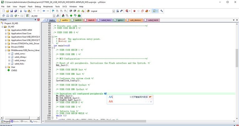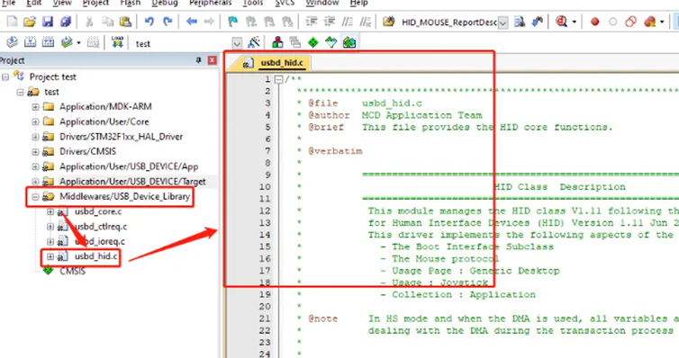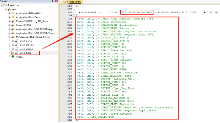 - 我们打开实验工程文件,修改USB_hid.c文件