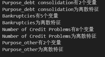 print(f'{i}有{unique_counts}个变量') # 连续型变量通常有很多唯一值,而离散型变量的唯一值较少