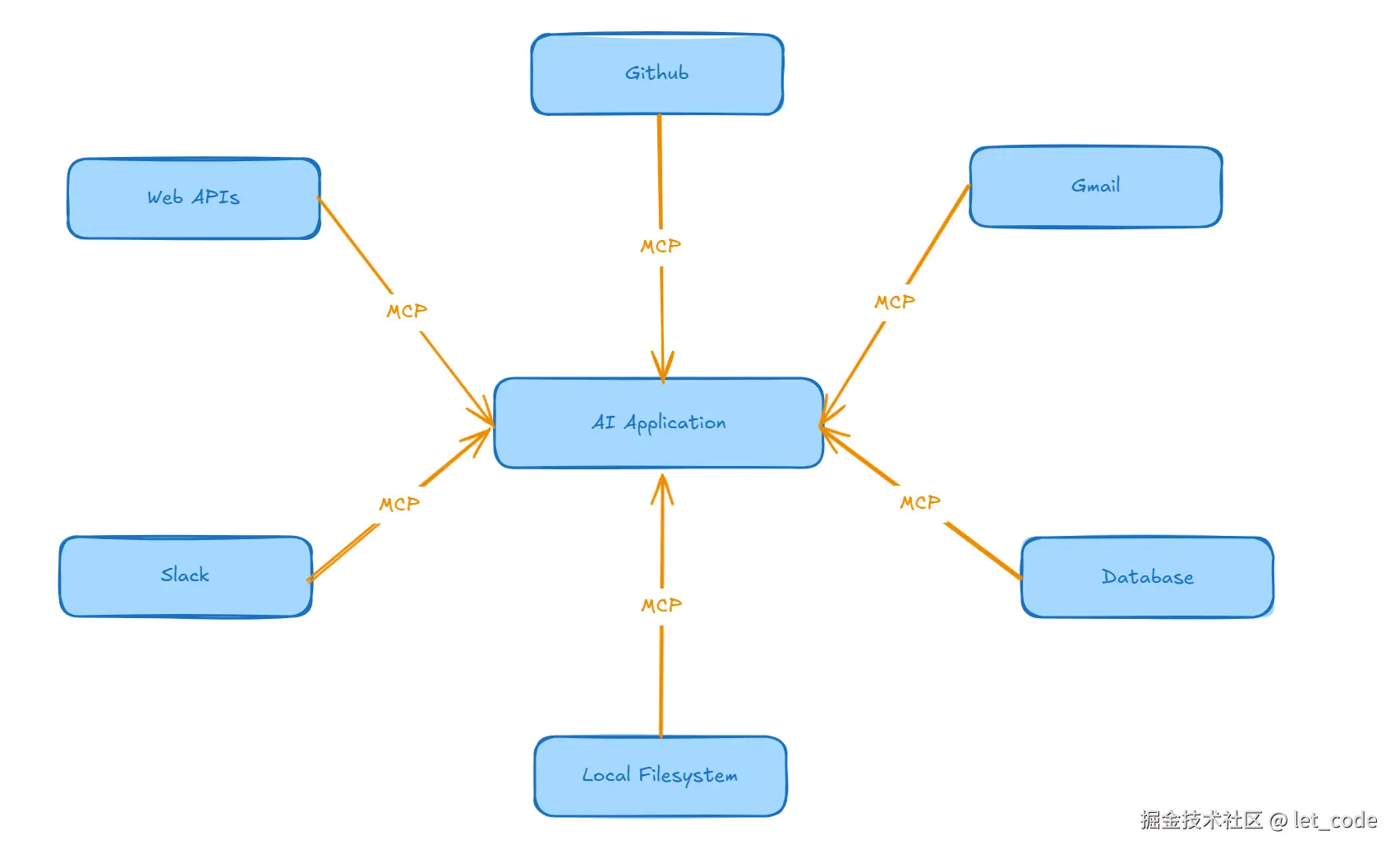 MCP 旨在为大型语言模型(LLM)应用提供标准化接口,使其能够: