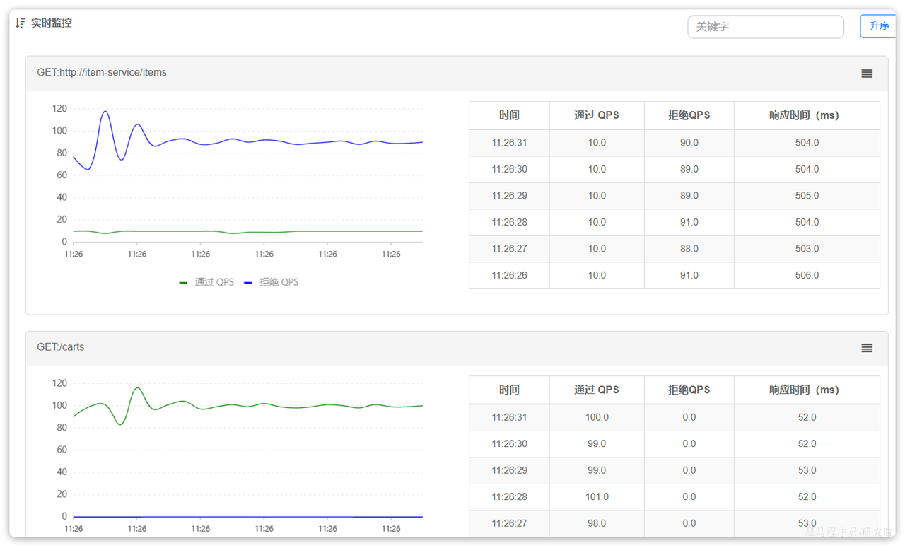 这个接口的通过QPS稳定在6附近,而拒绝的QPS在4附近,符合我们的预期。