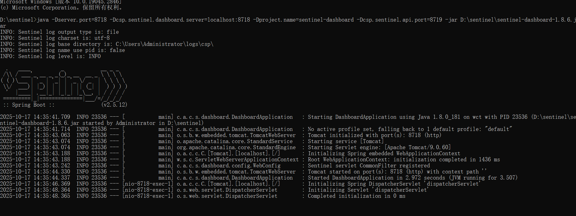 java -Dserver.port=8718 -Dcsp.sentinel.dashboard.server=localhost:8718 -Dproject.name=sentinel-dashboard -Dcsp.sentinel.api.port=8719 -jar D:\sentinel\sentinel-dashboard-1.8.6.jar