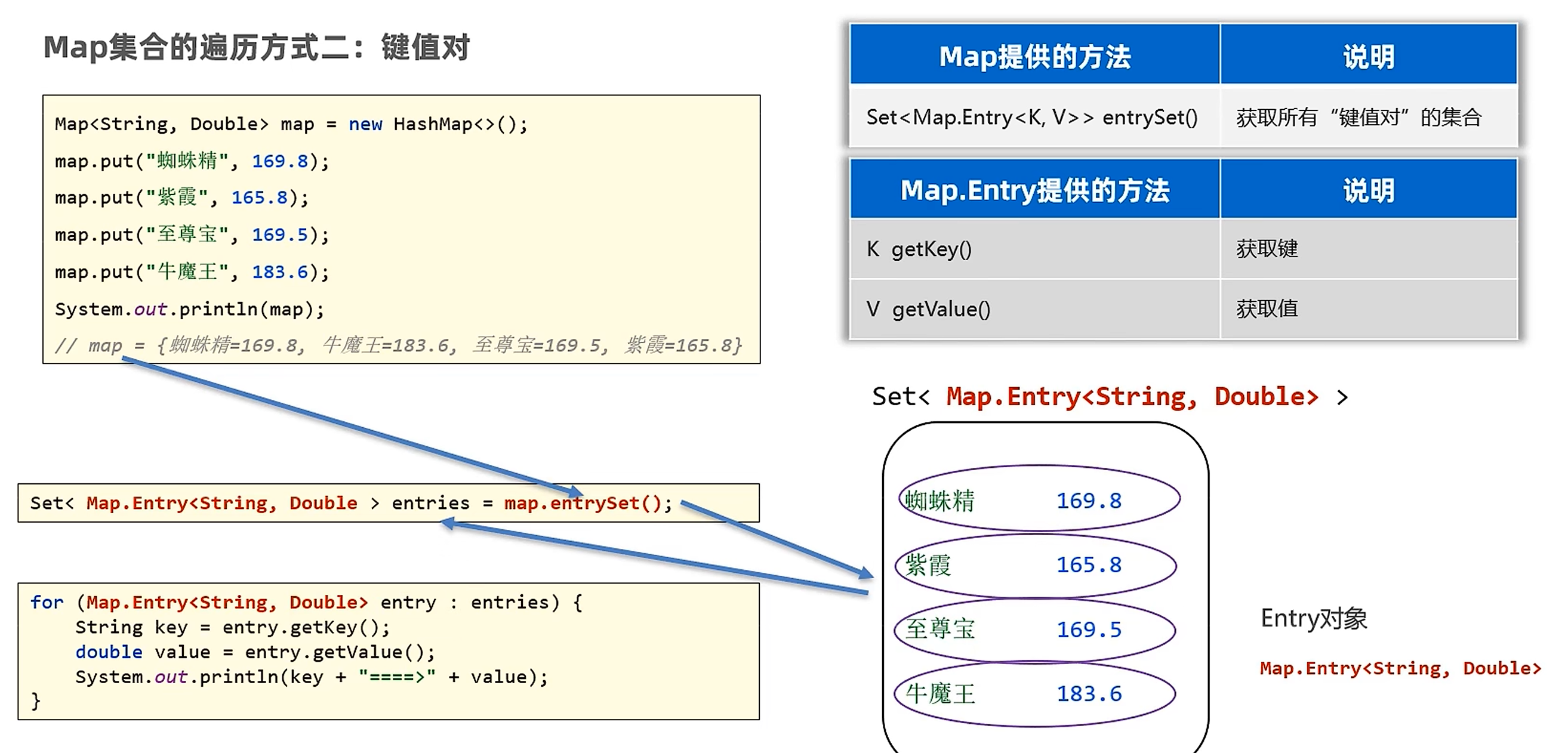 System.out.println(map); // {蜘蛛精=172.5, 牛魔王=183.3}
