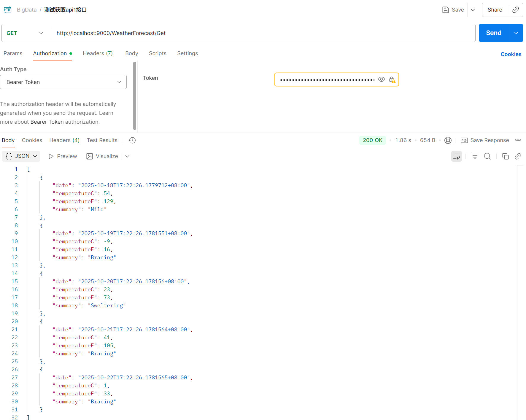 新增测试控制器WeatherForecastController.cs