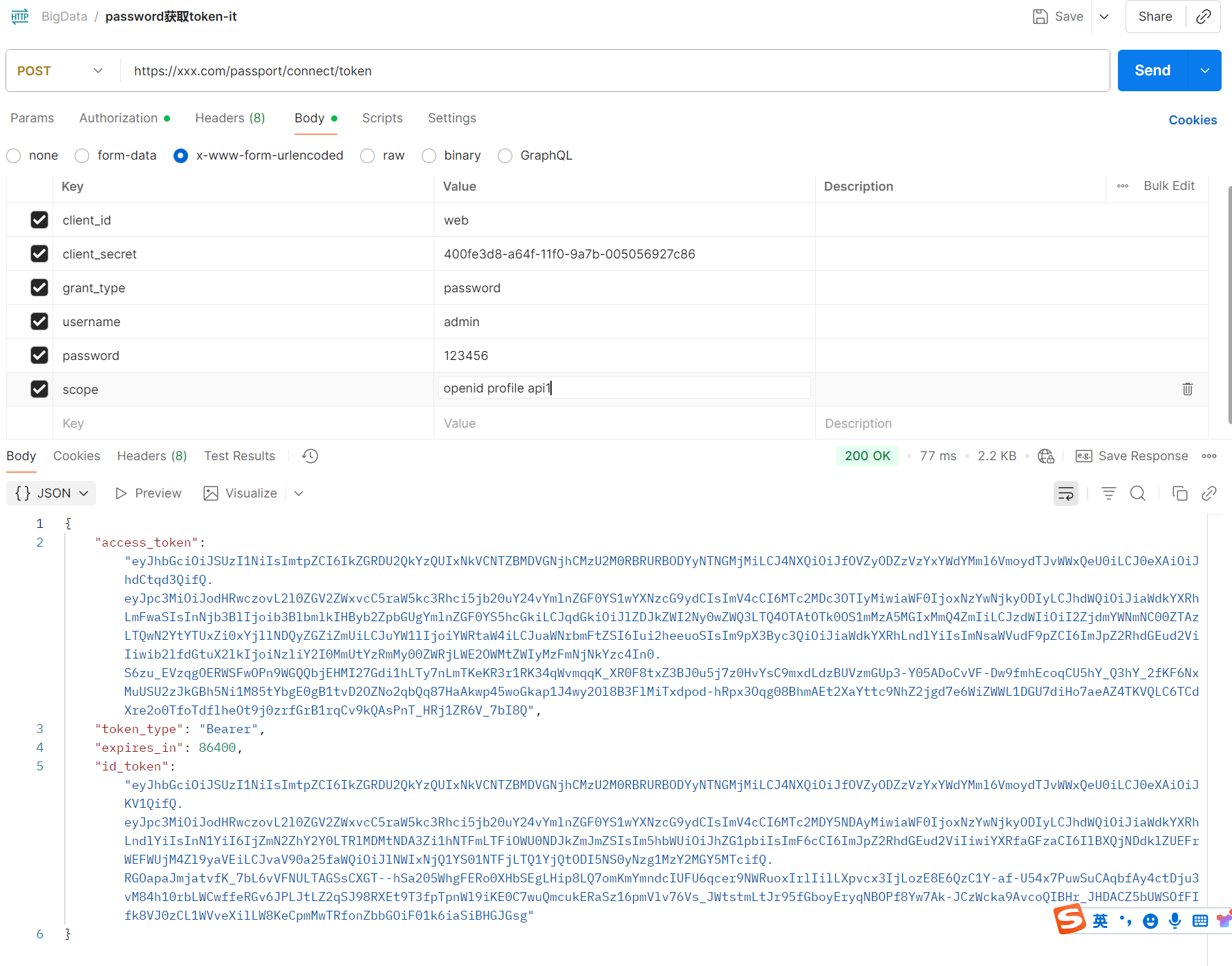 使用password方式获取token