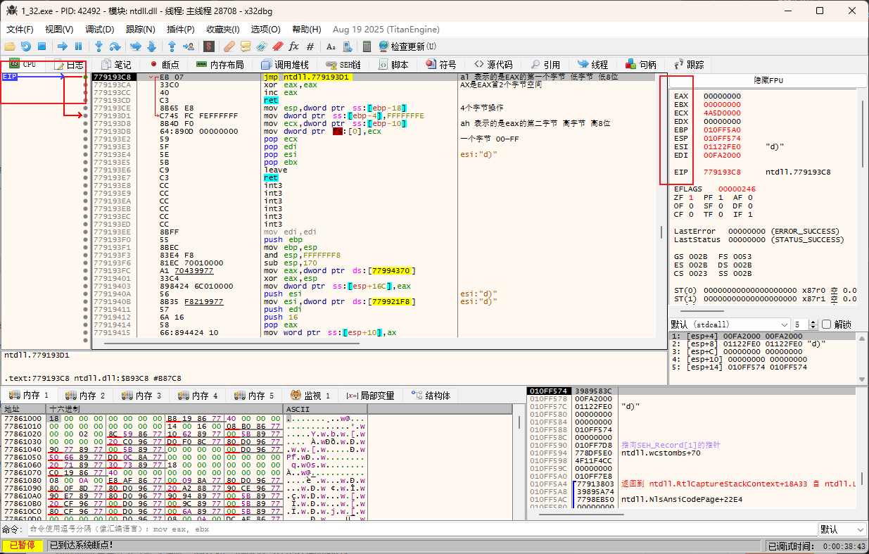 779193D3 | B8 00000000 | mov eax,0 | 4个字节