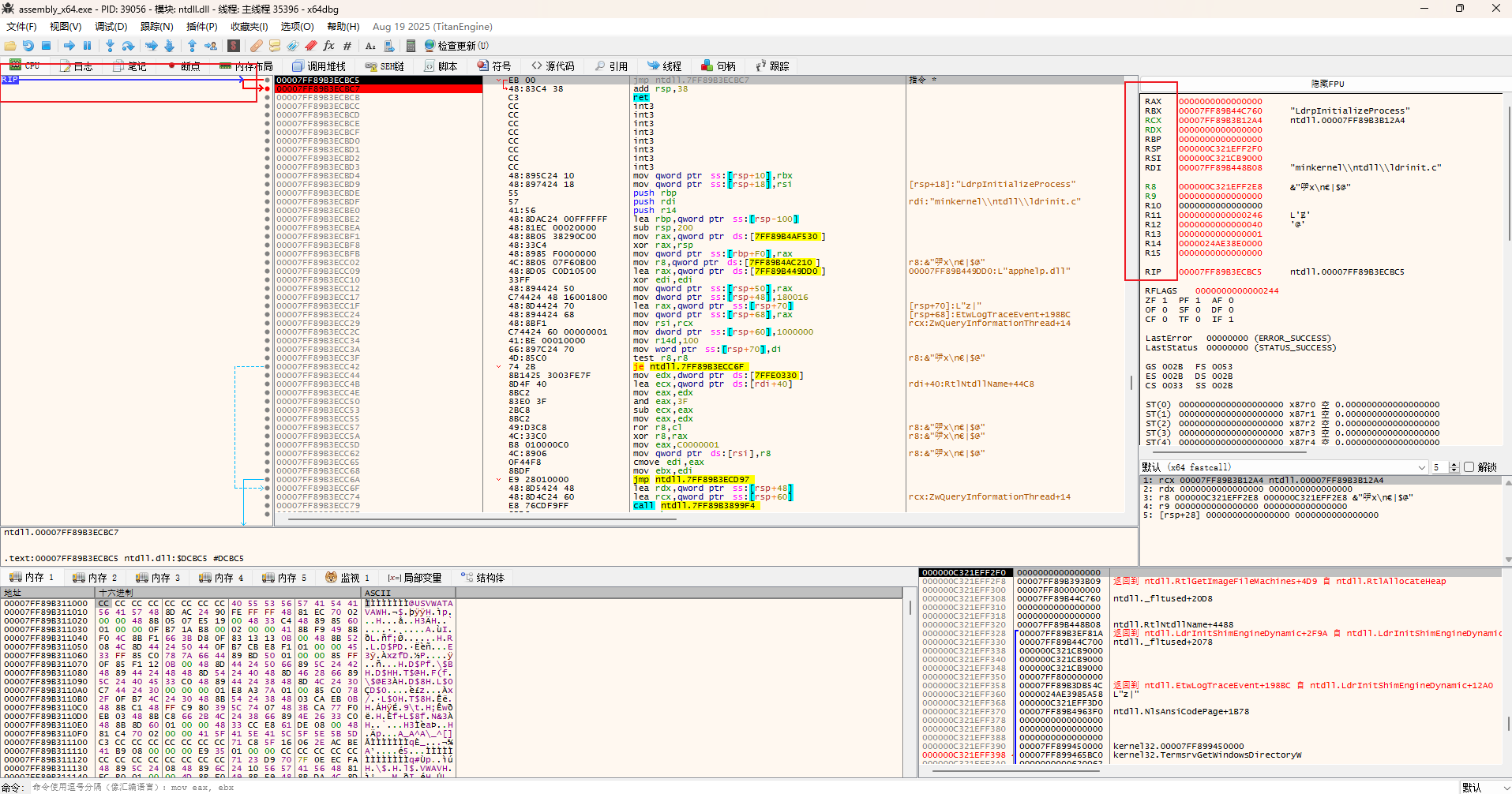 等都是X86 汇编语言中CPU上的通用寄存器的名称,是32位的寄存器。如果用C语言来解释,可以把这些寄存器当作变量看待。