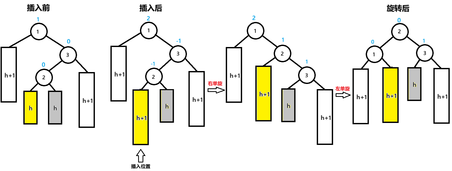 三:父节点的bf=-2,父节点的左子节点的右子节点bf=1
