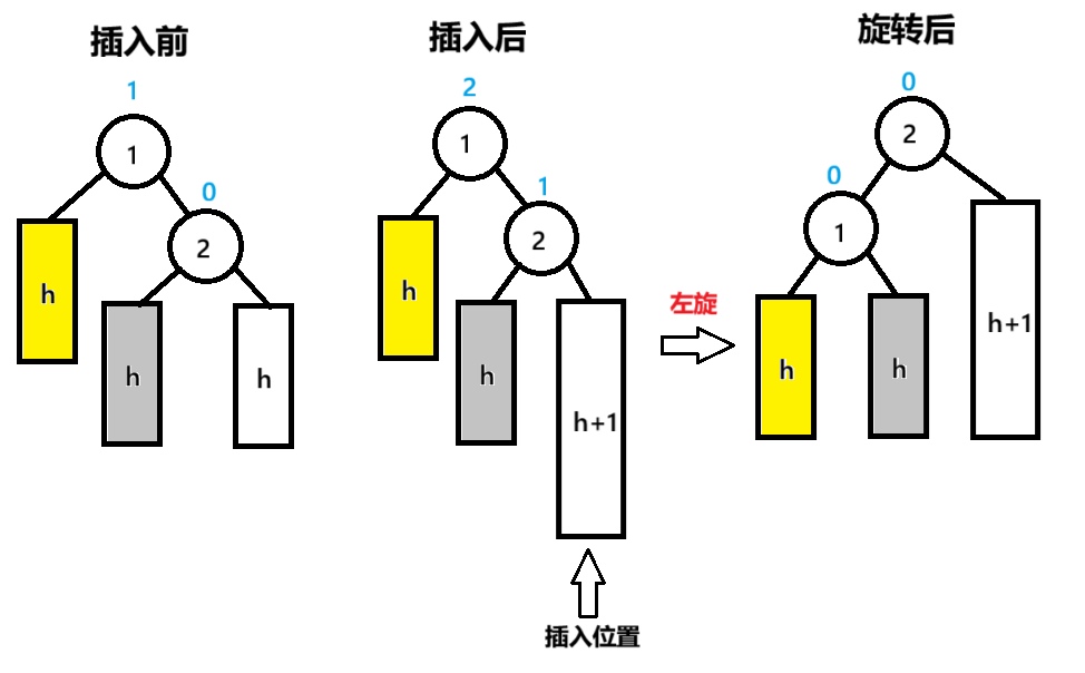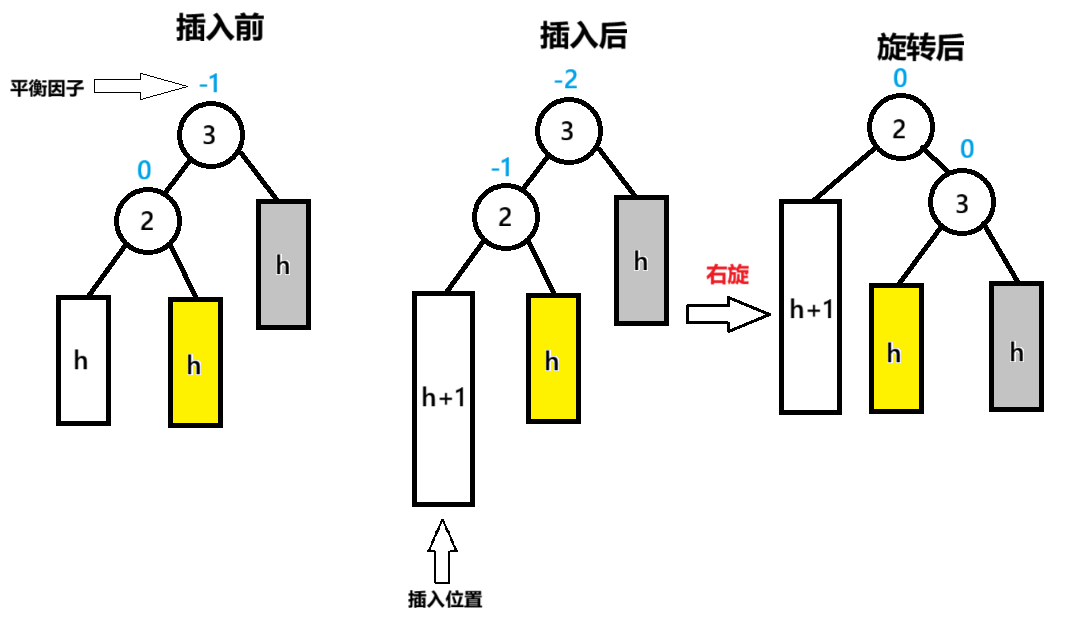 AVL树的左右子树高度差不能超过1,这里为了方便讲解,引入平衡因子(_bf)这个概念,