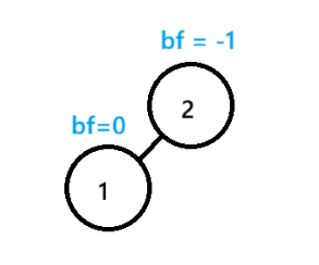 节点1左右子树高度都为0,平衡因子 = 右高度-左高度 :bf = 0 - 0