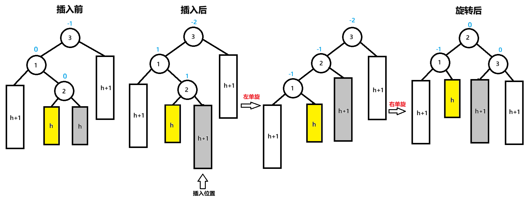 二:父节点的bf=-2,父节点的左子节点的右子节点bf=-1