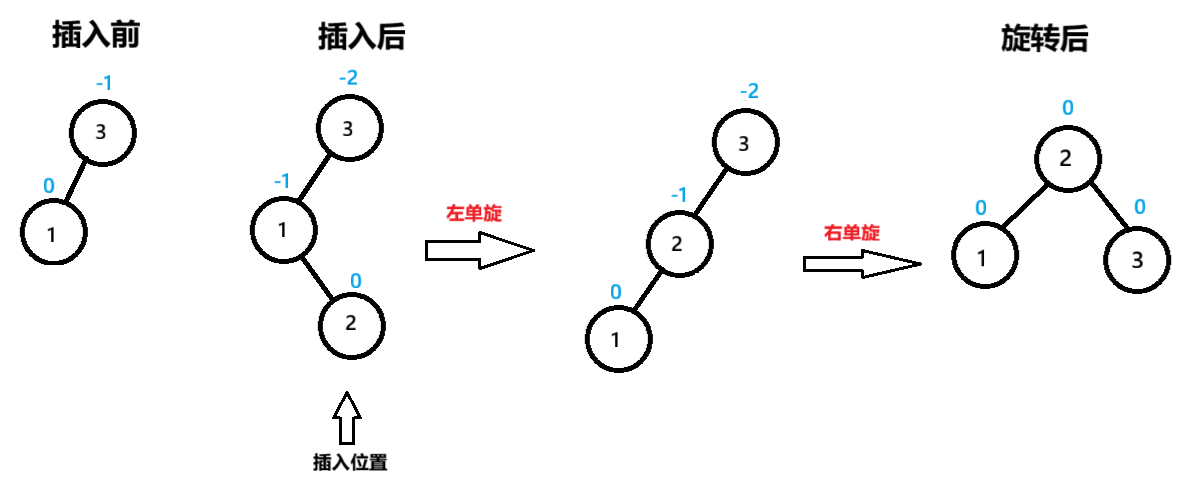 一:父节点的bf=-2,父节点的左子节点的右子节点bf=0