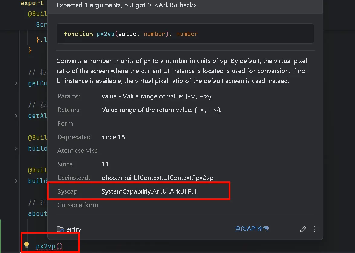 在IDE工具中也可以方便查看某个API的具体能力集: