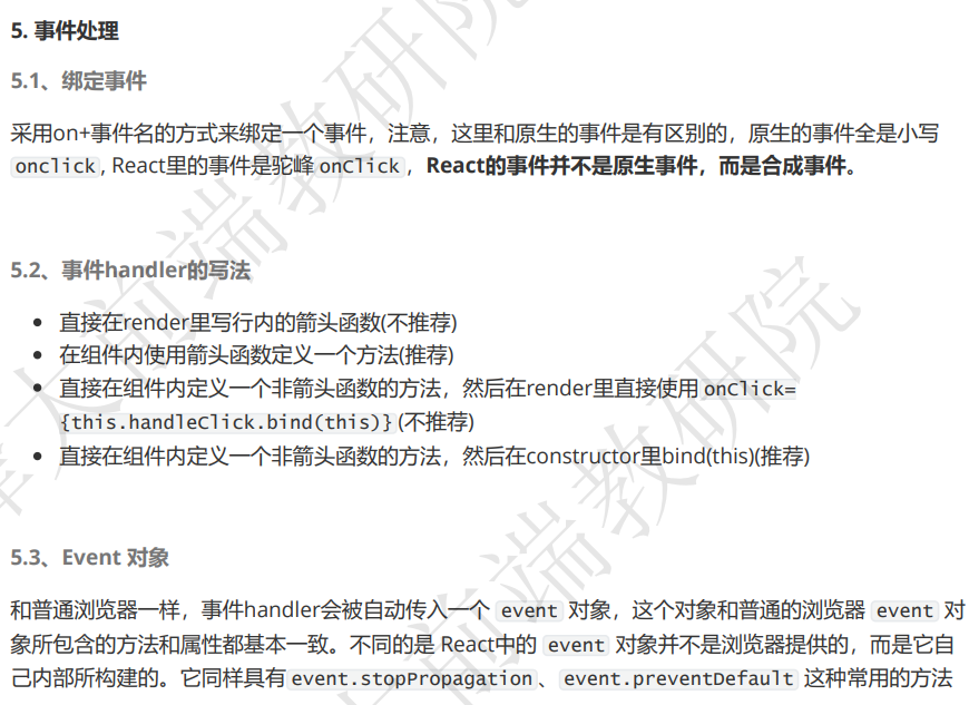 react并不会真正的绑定事件到每一个具体的元素上,而是采用事件代理的模式