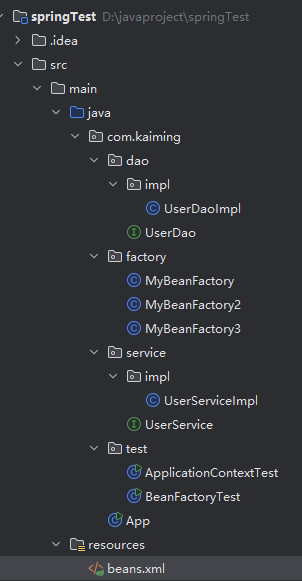 <bean id="userDao" class="com.kaiming.dao.impl.UserDaoImpl"></bean>