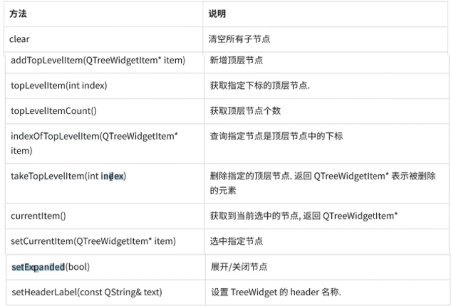 使用 `QTreeWidget` 表示一个树形控件。里面的每个元素,都是一个 `QTreeWidgetItem`,每个 `QTreeWidgetItem` 可以包含多个文本和图标,每个文本/图标为一个列。 可以给 `QTreeWidget` 设置顶层节点(顶层节点可以有多个),然后再给顶层节点添加子节点,从而构成树形结构。