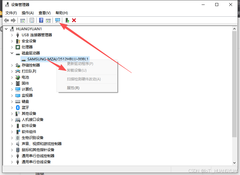 - 在弹出的驱动列表中,找到"磁盘驱动器",找到出现问题磁盘,右键点击驱动,选择卸载。