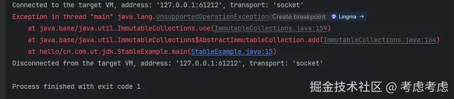 当然该List是不可变的,往List里面增加或移除元素,就会报错