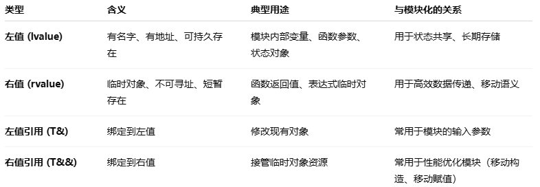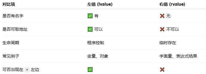 这两个概念几乎贯穿了整个语言体系,也是理解"引用"、"移动语义"、"完美转发"的基础。