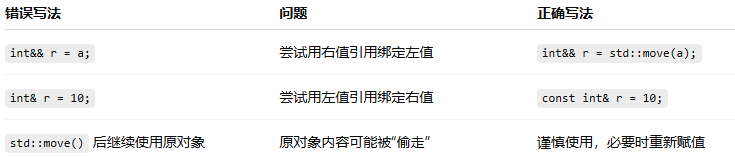 int &&r = std::move(x); // ✅ 把左值x变成右值