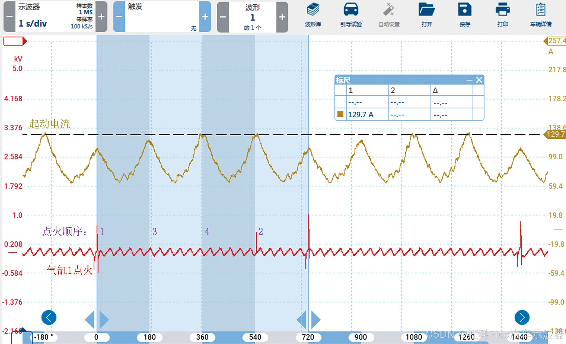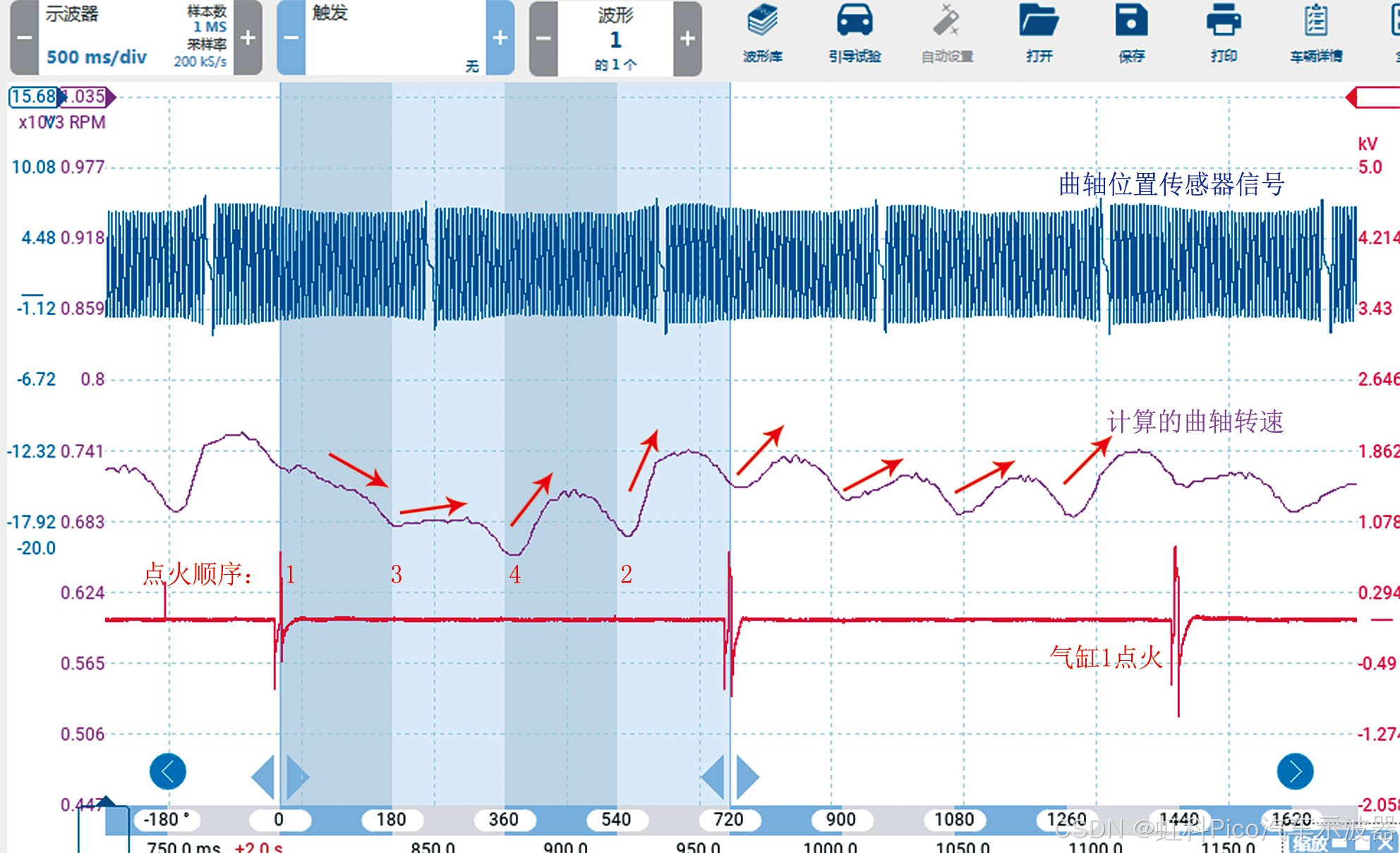 图1 怠速时的曲轴位置传感器信号和气缸1点火波形