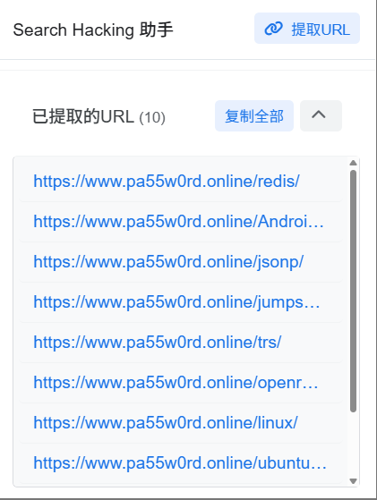 从搜索结果中一键提取所有 URL,支持单个或批量复制。