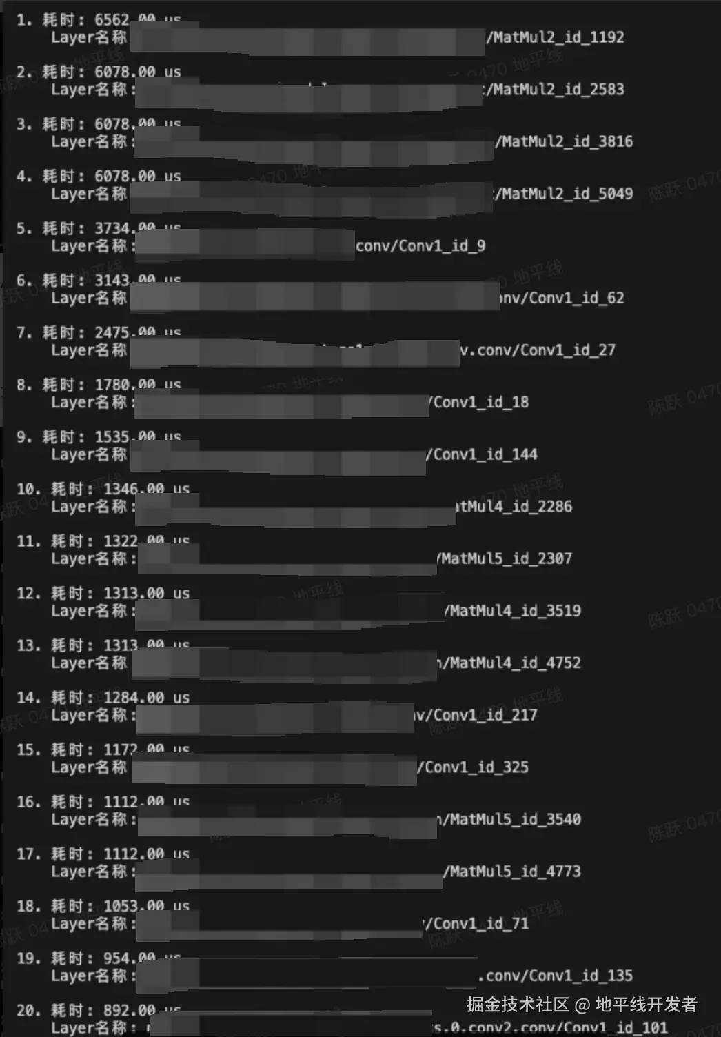 如下图是使用脚本统计的算子耗时,可以看到以下信息: