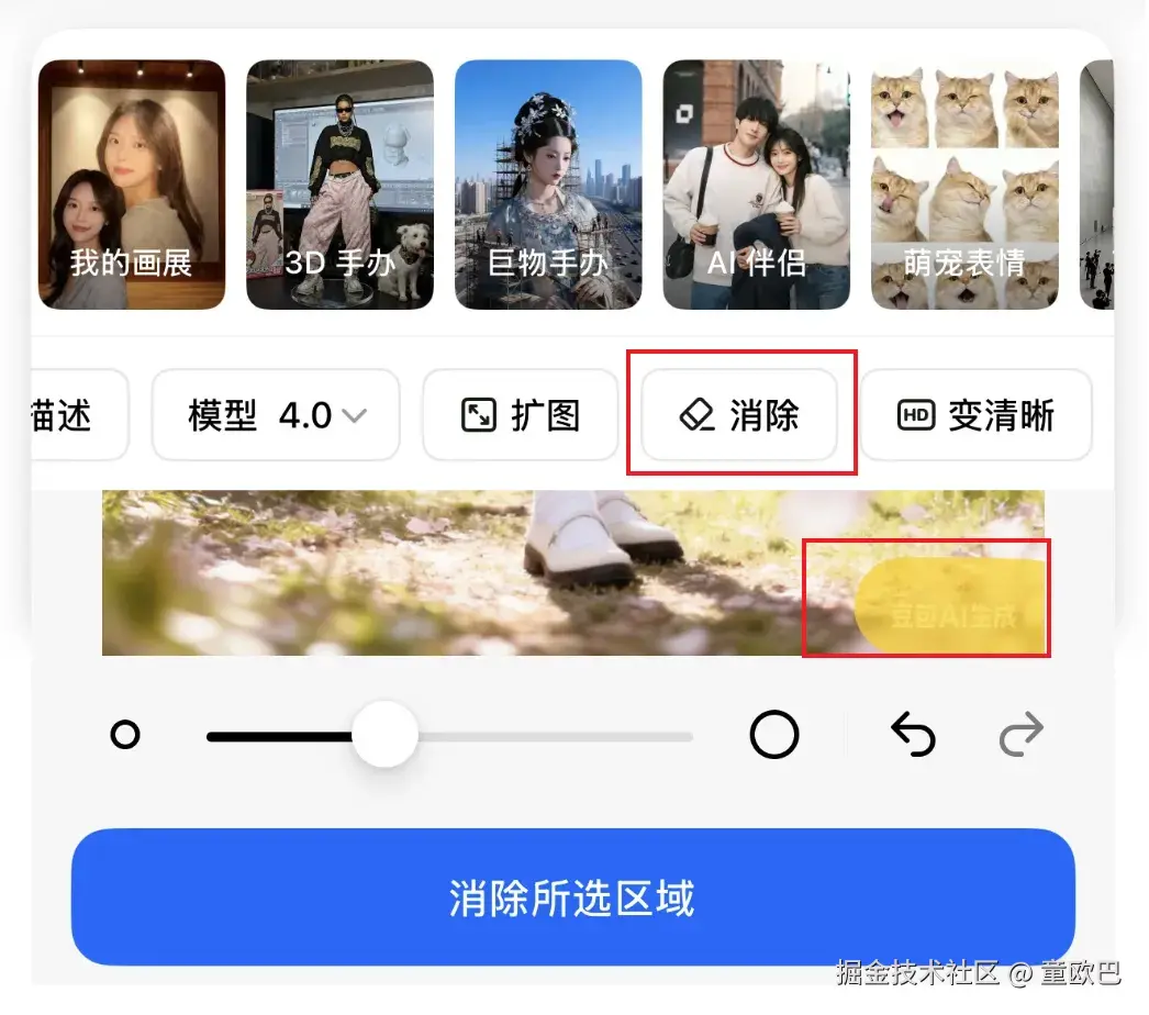 其实就藏在豆包里面,在菜单栏往右边滑,涂抹一下消除即可。
