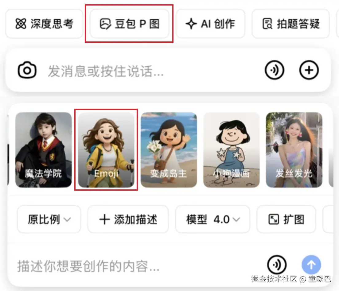点击豆包 P 图,上传照片,点击 Emoji 模板。