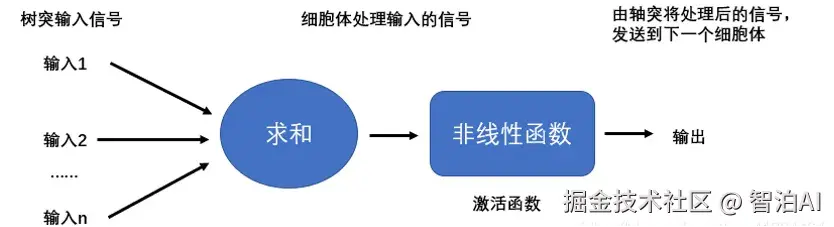 生物神经元从其他神经元接收强度各异的电脉冲形式的"消息",这些脉冲可以是兴奋性的也可以是抑制性的。