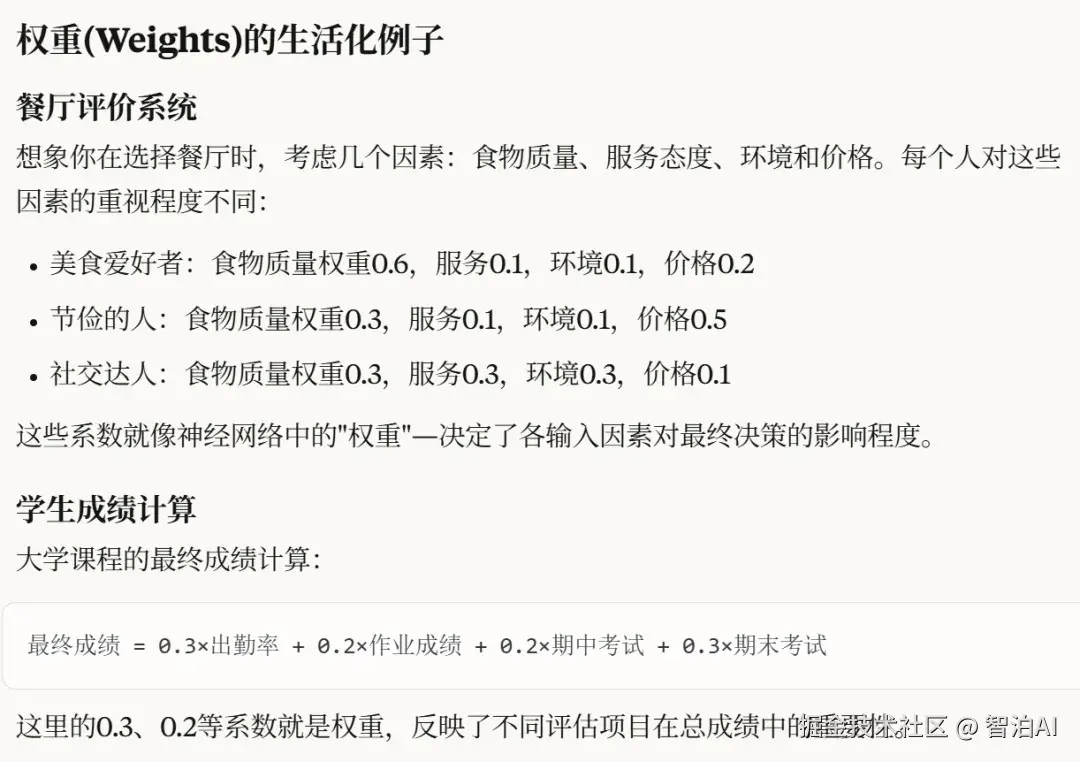 权重是最主要的参数之一。通过反复训练,模型不断调整权重,使其能够更好地拟合训练数据。这也就是训练的核心意义------找到最合理的权重和偏置组合,使得模型能够在新数据上表现良好。