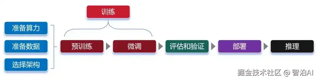 部署与推理:评估和验证完成后,大模型就可以部署到生产环境中,用于推理任务。此时,模型的参数已经定型,不再变化,可以真正开始工作。推理过程就是用户通过提问或提供提示词(Prompt),让大模型回答问题或生成内容。
