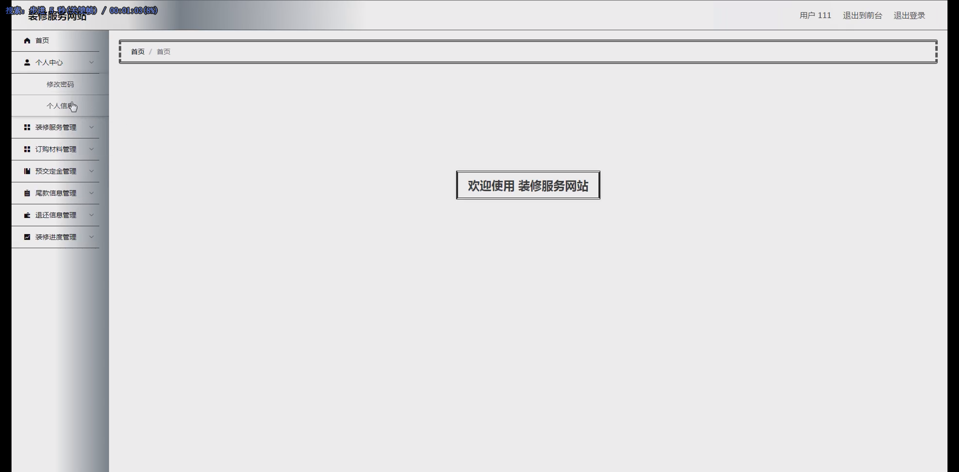 - 订单与资金模块:涵盖订购材料(生成材料订单)、退还信息(材料退换申请与审核)、预交定金(装修定金支付与记录)、尾款信息(尾款金额计算与结算)功能。