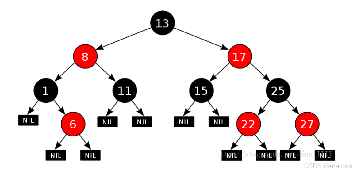 • 性质3:所有叶子节点(NIL节点)都是黑色的