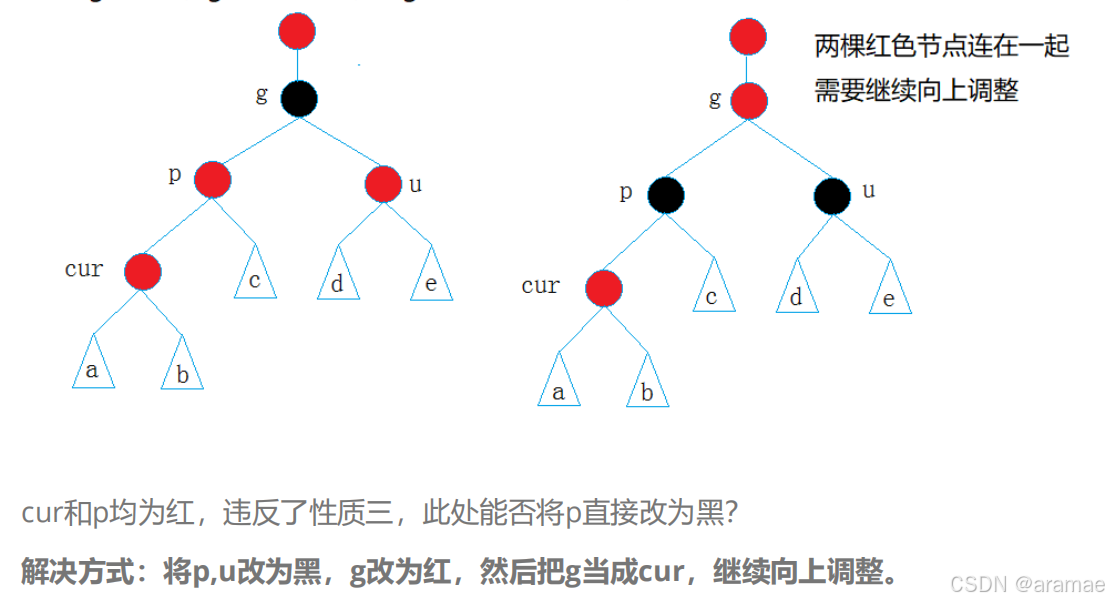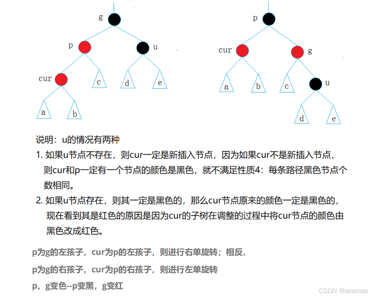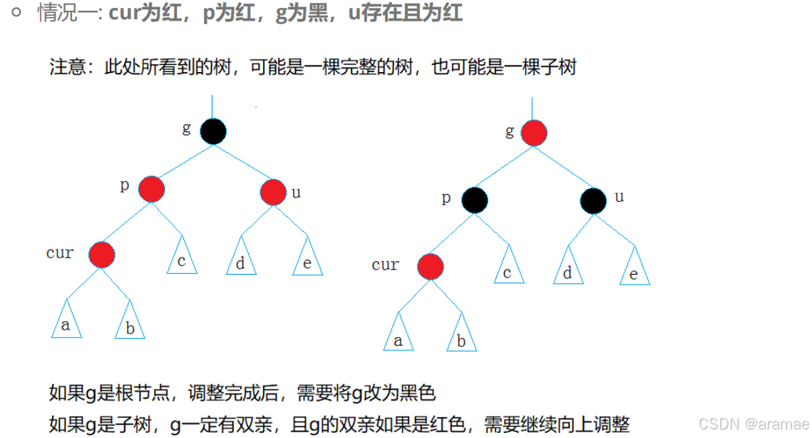 约定:cur为当前节点,p为父节点,g为祖父节点,u为叔叔节点